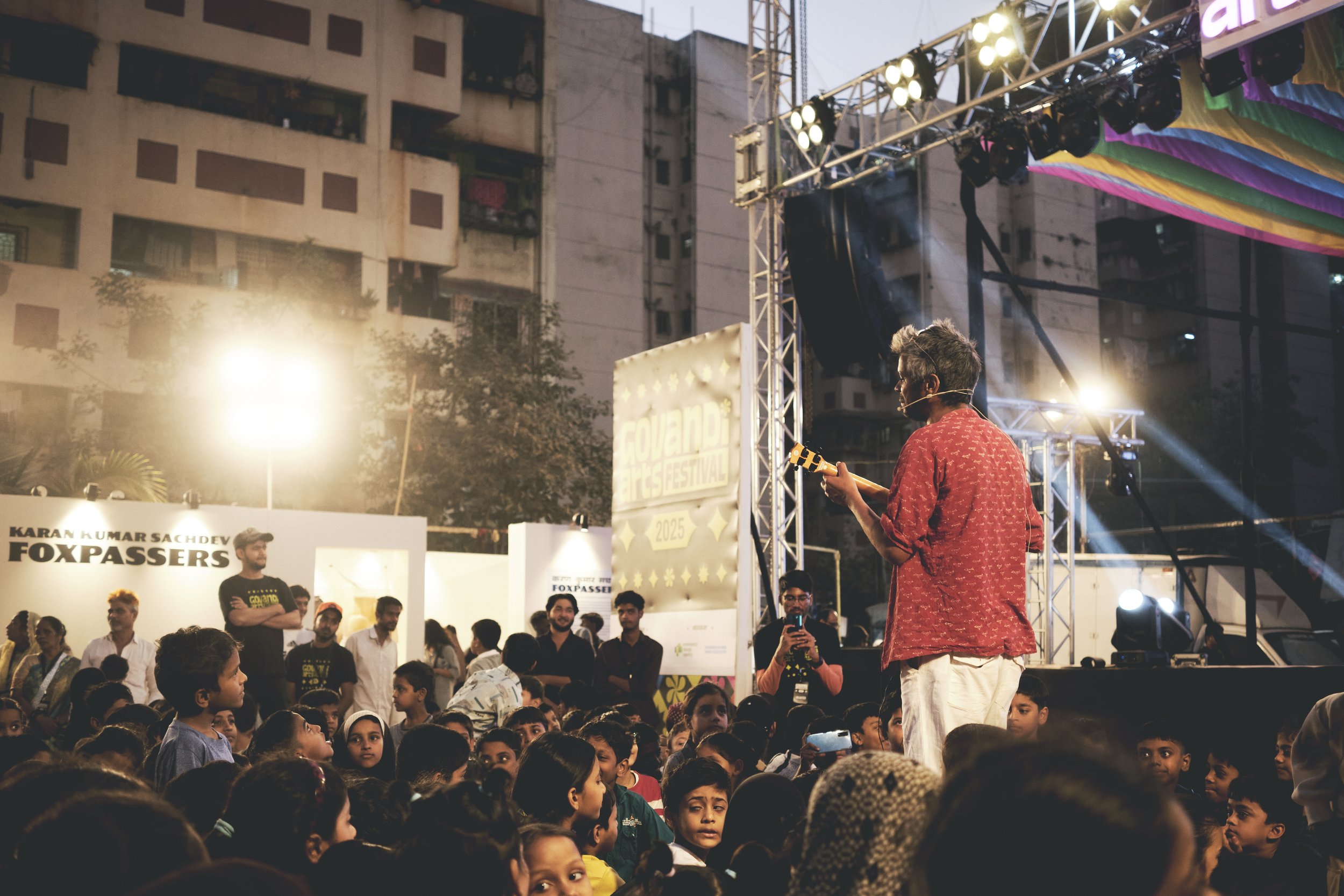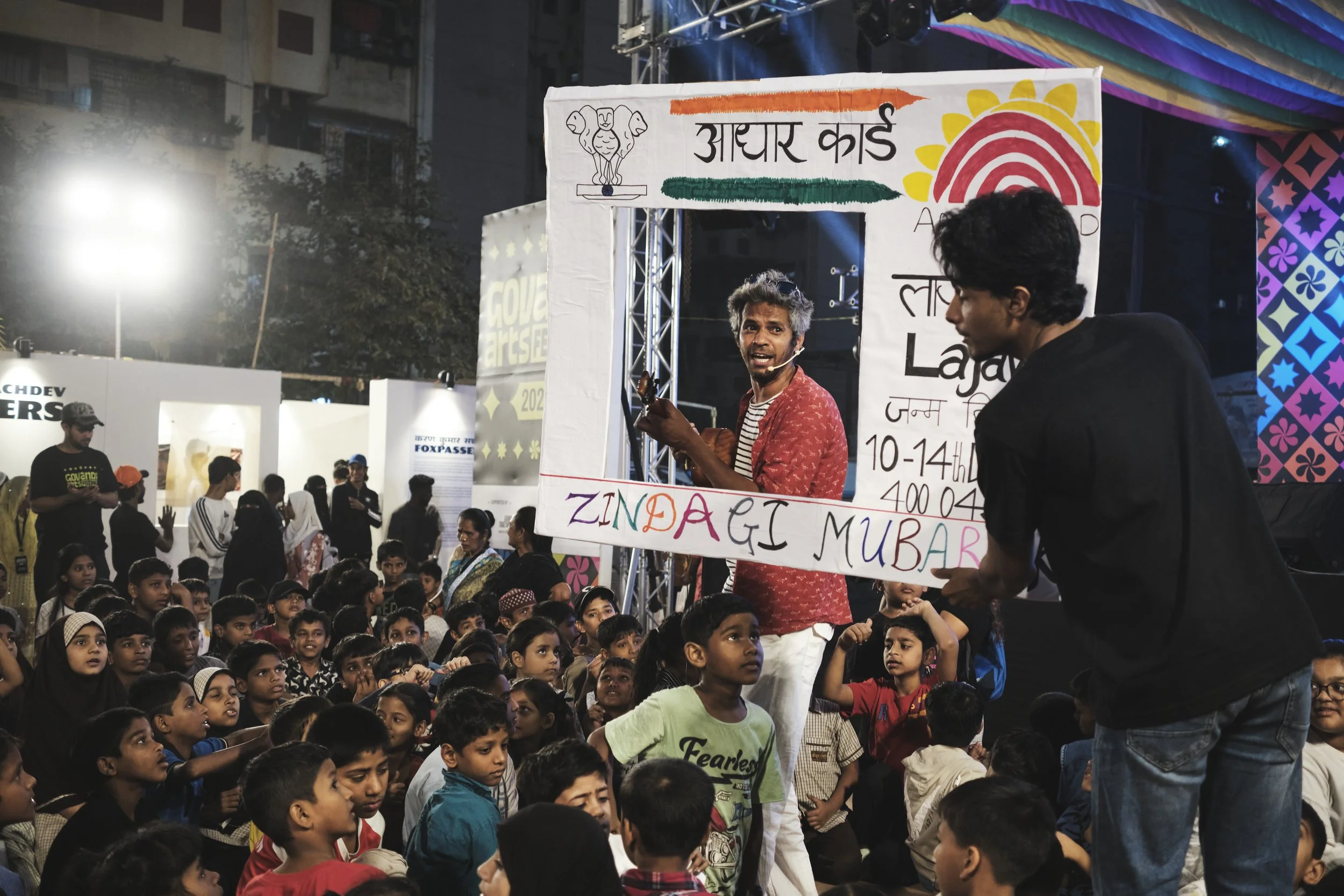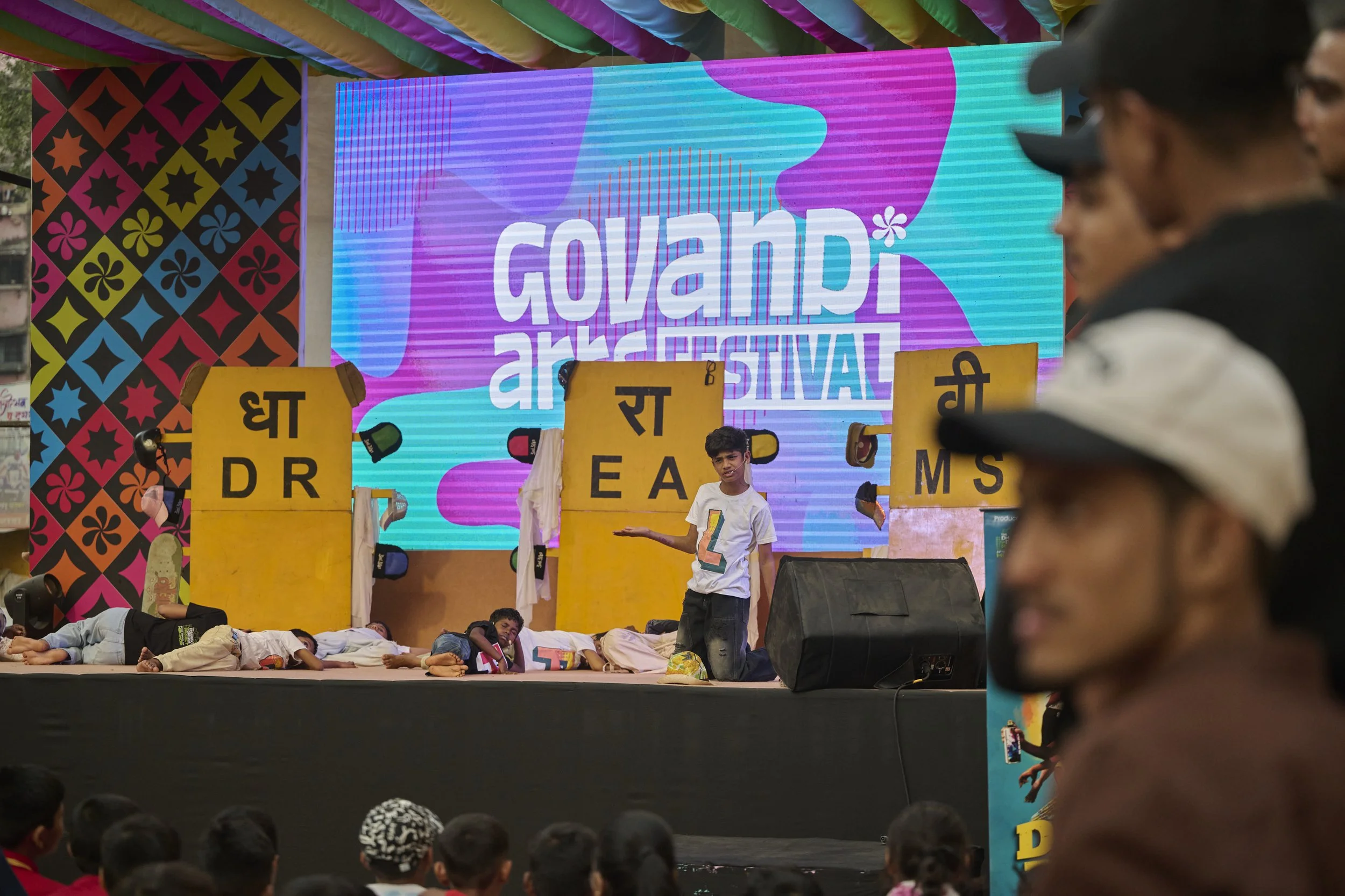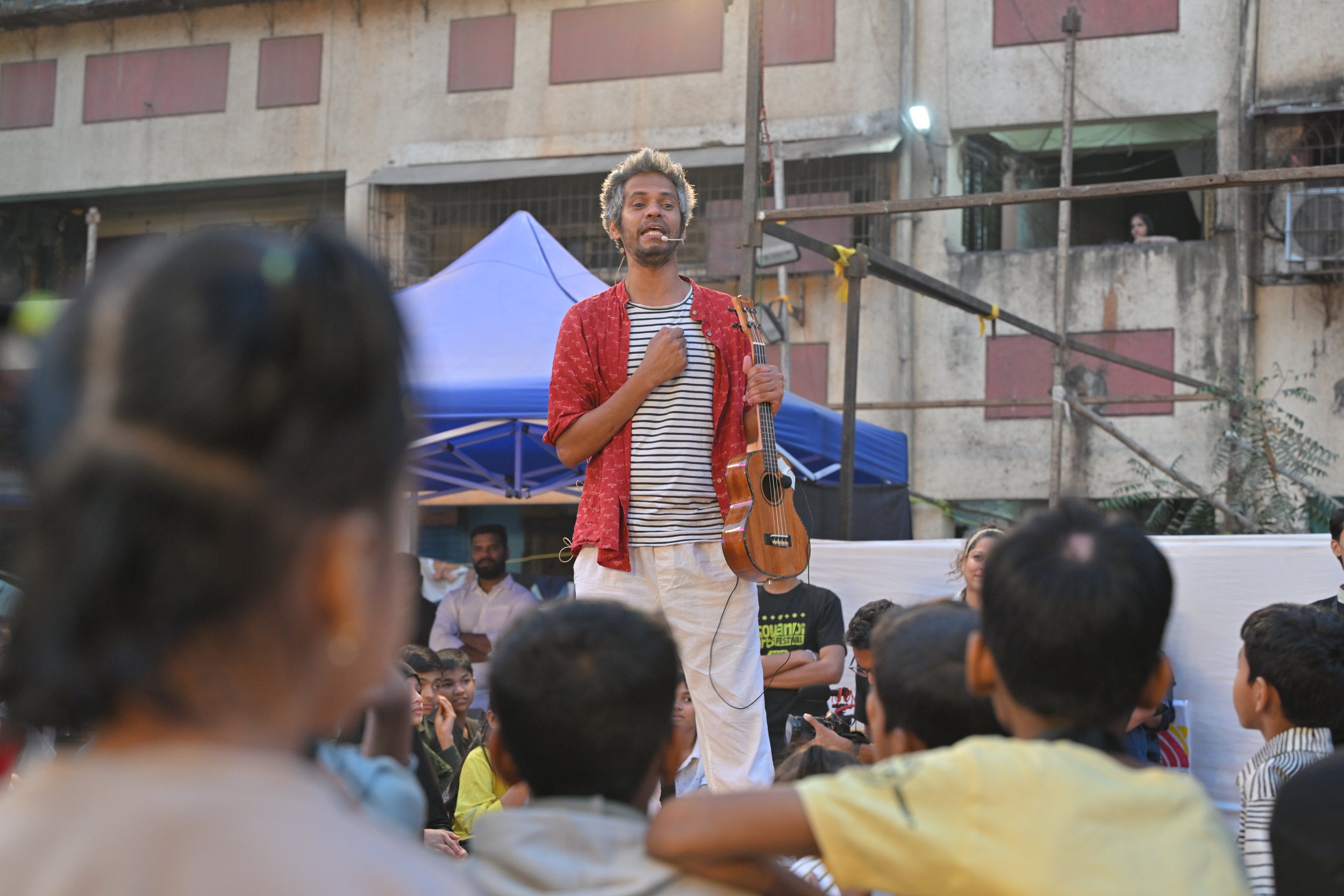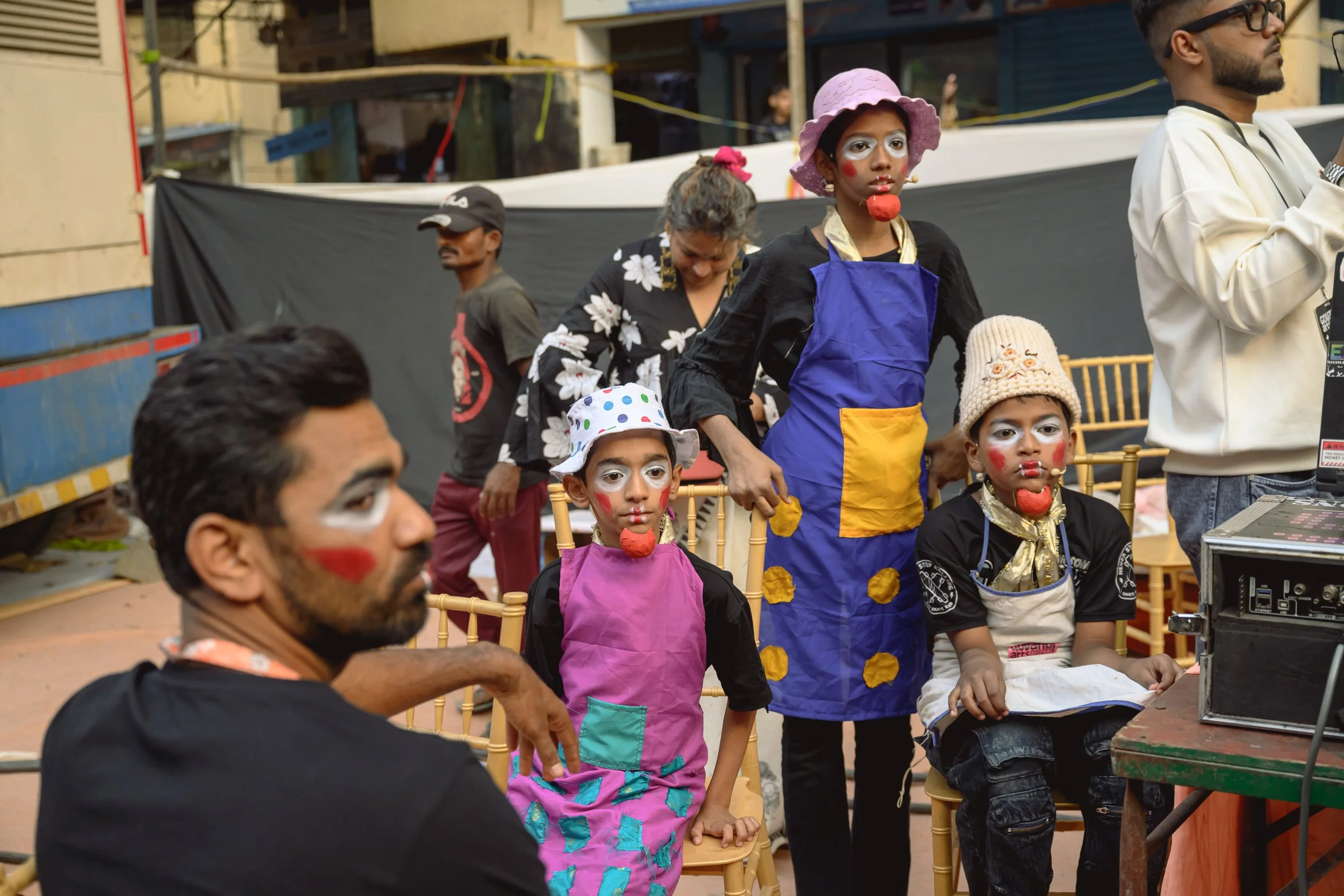 Through comedy, improvisation, and exaggeration, the clowns advocate for a humane and just world. The act mirrors how people often adapt, imitate, and perform to feel part of a community– reflecting the social and emotional realities of Govandi and its people, where the struggle for dignity, identity, and inclusion is deeply felt.